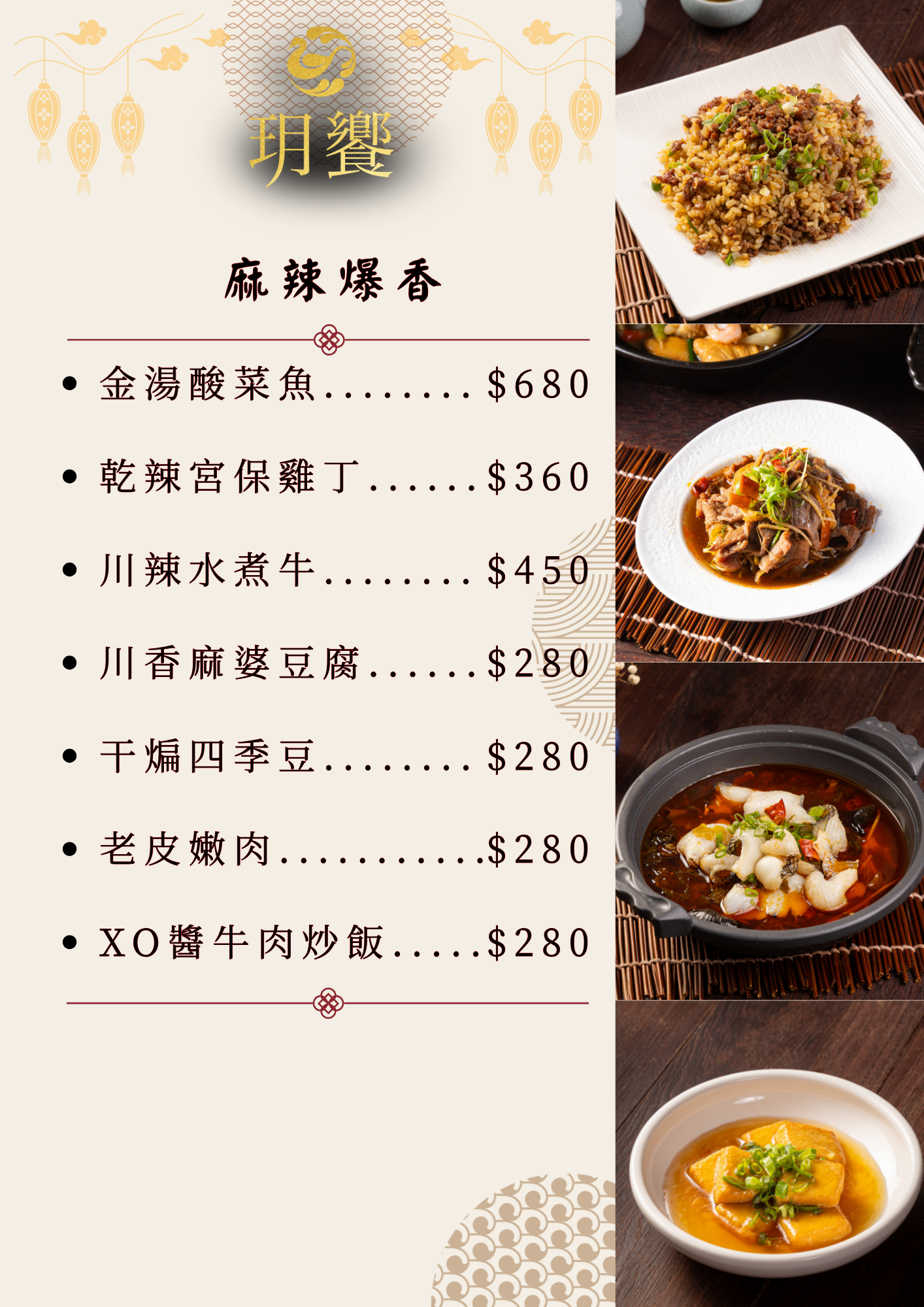 Buffet 提供經典川味,辣與不辣兼備,另有冷菜台與鐵板三鮮,滿足不同口味。